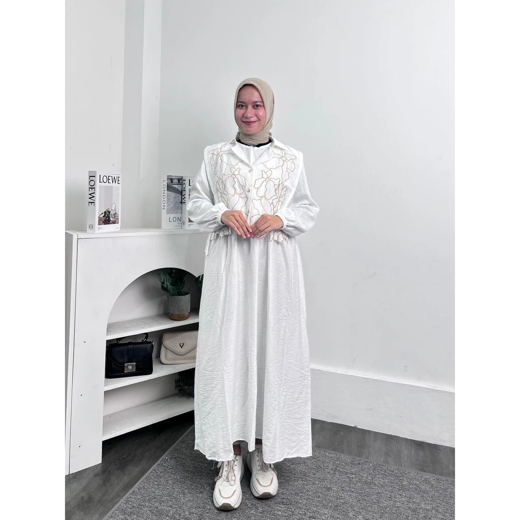 Dengan desain bordir yang cantik dan modern, Midi dress ini akan membuatmu terlihat anggun dan stylish di setiap kesempatan.