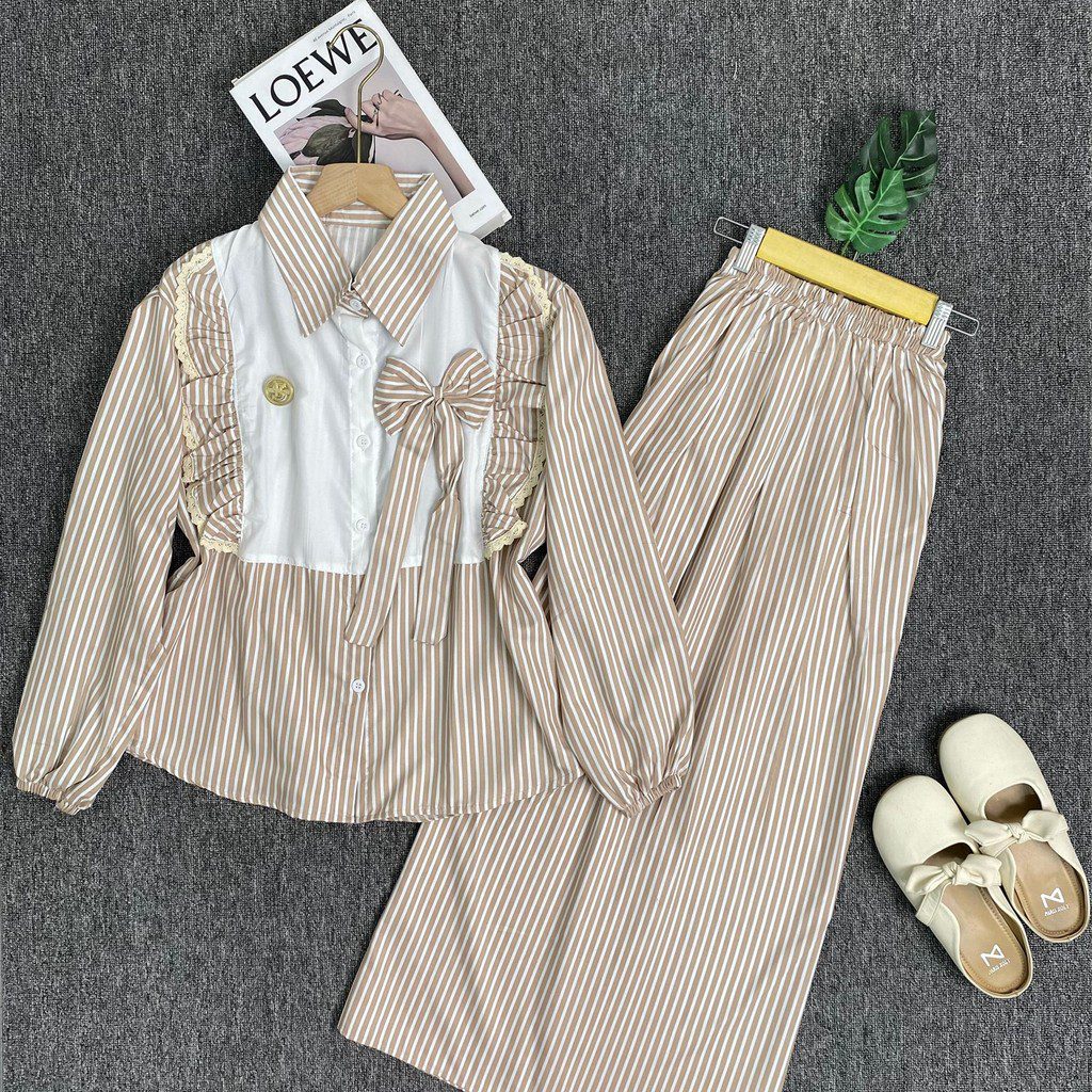 Tampil anggun dan stylish dengan Kirana Setrok Kekinian dari SARI FASHION. Perpaduan blouse salur unik dengan sentuhan hiasan pita manis di pinggir dada, memberi kesan feminin sekaligus modern.