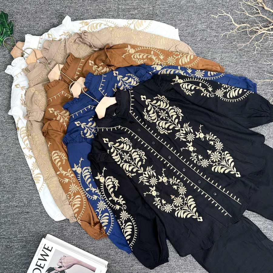 Tampil casual dan berkelas dengan Rinjani One Set bordir Busui RK 07625, dibuat dengan design simple namun tetap stylist dan kekinian. terbuat dari bahan linen dengan detail bordir yang cantik dan manis. Bahan tebal anti terawang, adem, dan nyaman dipakai seharian. cocok untuk daily wear, hangout bareng temen atau orang special.